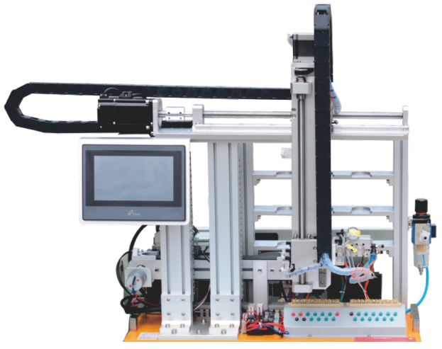 一、裝置特點(diǎn) 1. 配置三軸機(jī)器人作為裝配的執(zhí)行機(jī)構(gòu),具有 X軸、Y軸、Z軸三個(gè)方向的執(zhí)行能力,可完成智能抓取物料放料等功能; 2. 配置有光電開(kāi)關(guān),光電傳感器,光纖...